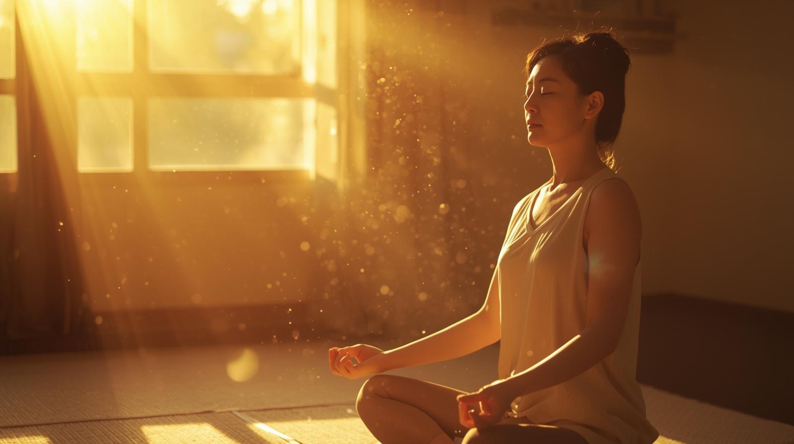 自分の内なるリズムと調和し、穏やかな朝を迎える女性
